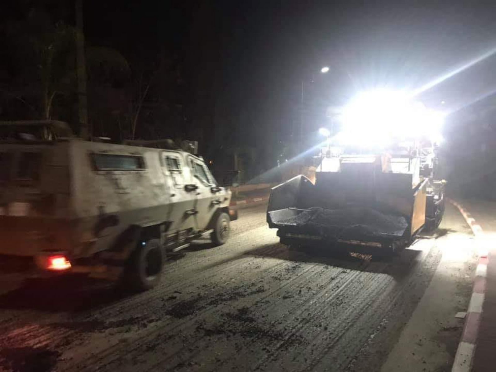 الاحتلال يقتحم مدينة نابلس وبلدة كفر قليل والضاحية ويداهم شارع فيصل أثناء العمل في تزفيته