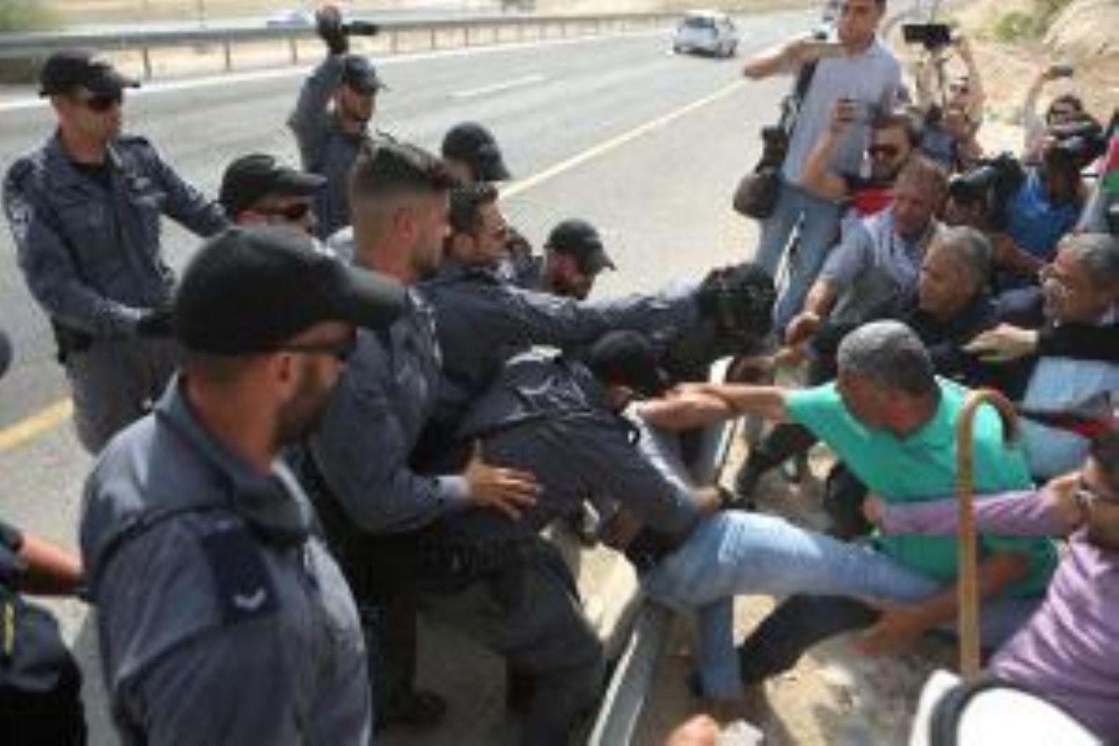 اصابة عدد من المواطنين بينهم الوزير وليد عساف بالاختناق واعتقال مرافقه خلال قمع الاحتلال مسيرة الخان الاحمر