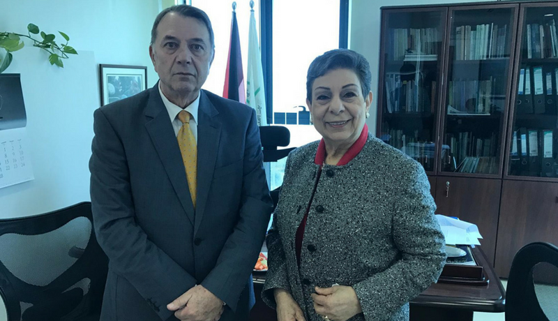 عشراوي تلتقي ممثل جمهورية بلغاريا وتطلعه على آخر المستجدات السياسية
