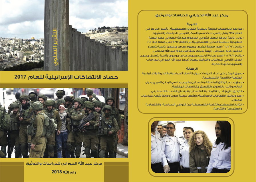 صدور كتاب "حصاد الانتهاكات الاسرائيلية للعام 2017"