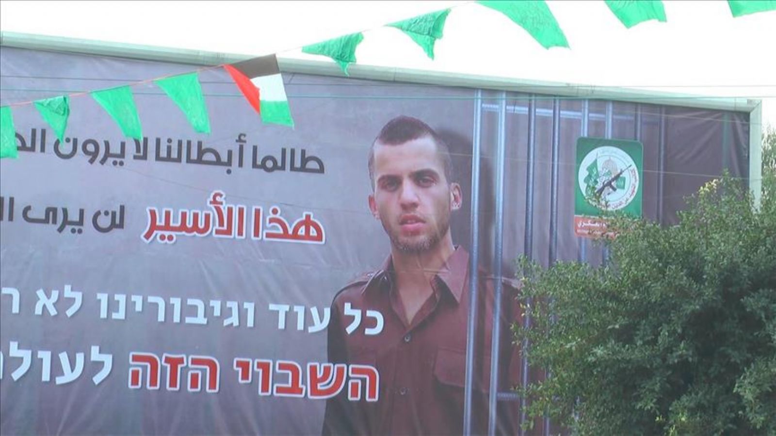 "القسام" تعلق لافتة ضخمة في غزة تحمل صورة جندي إسرائيلي أسير لديها