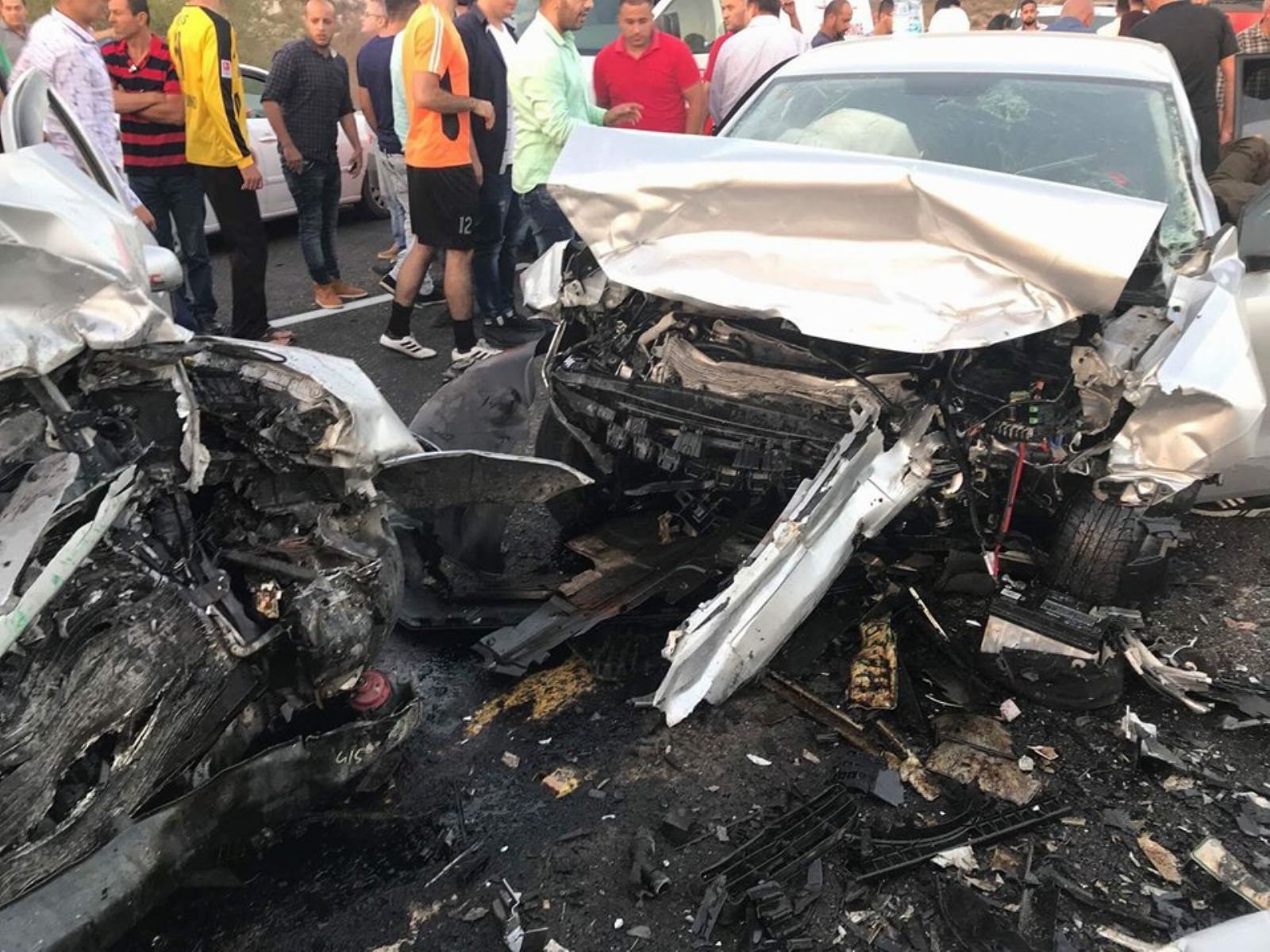مصرع مواطنة في حادث سير على الطريق الالتفافي "جسر مادما " جنوب نابلس وعدة اصابات .