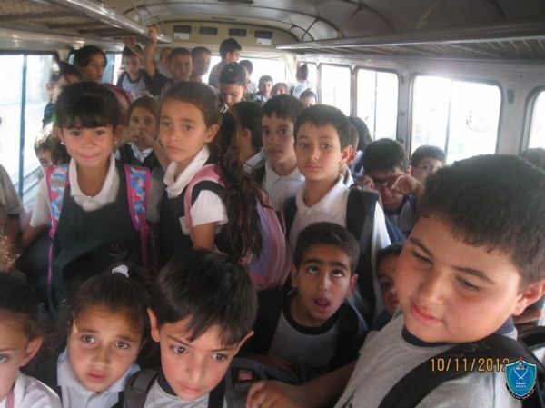الشرطة تضبط حافلة نقل طلاب بحمولة زائدة بلغت 22 طالب في الخليل
