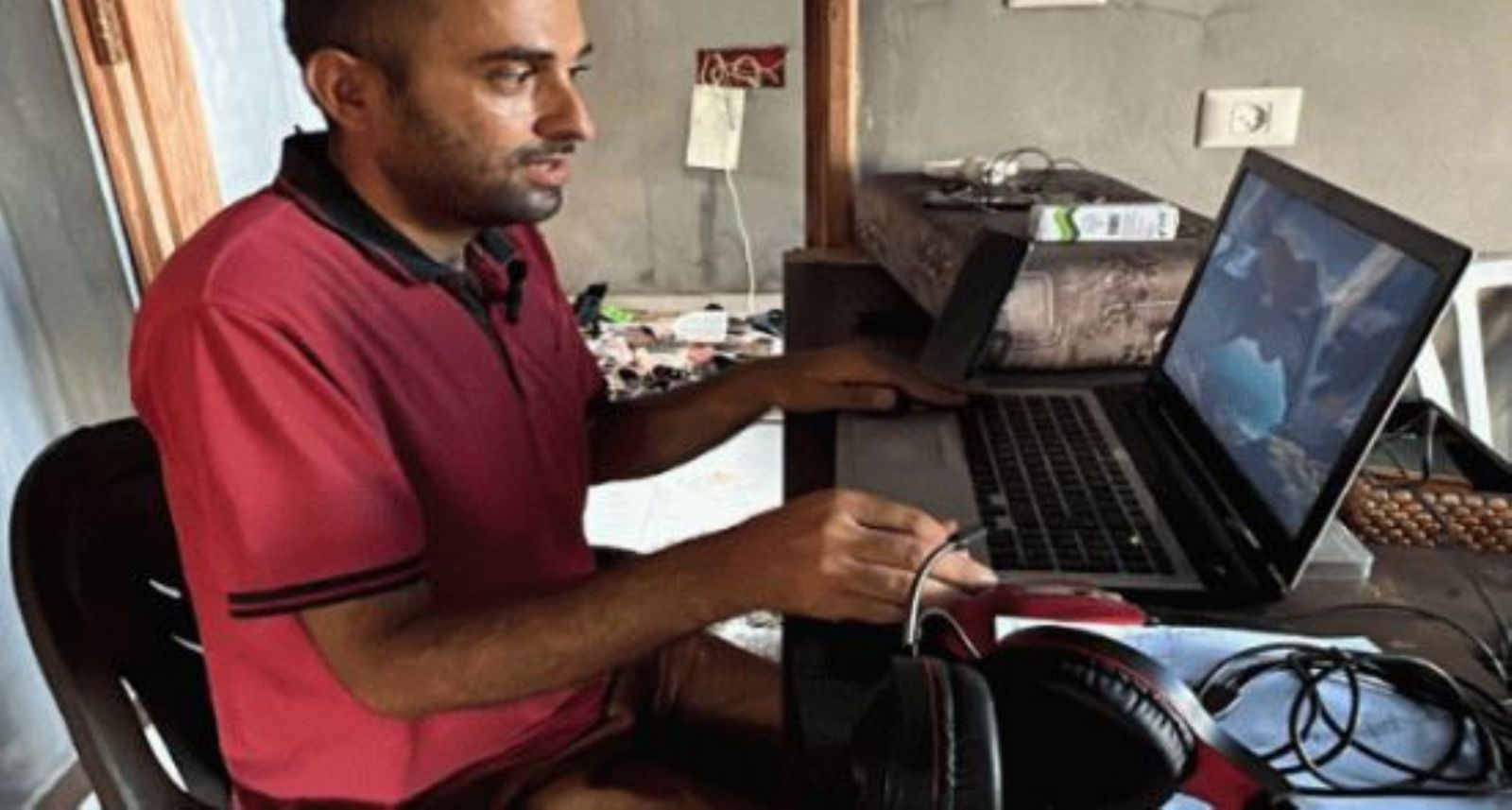 طالب يناقش رسالة الدكتوراه من منزله المدمر شمال غزة