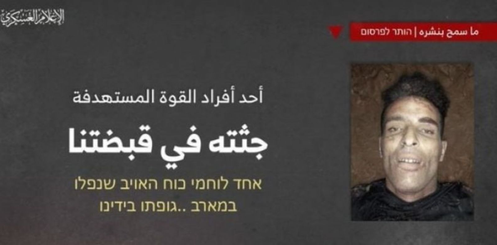 القسام تنشر صورة جندي إسرائيلي تحتفظ بجثته في غزة منذ أسبوع