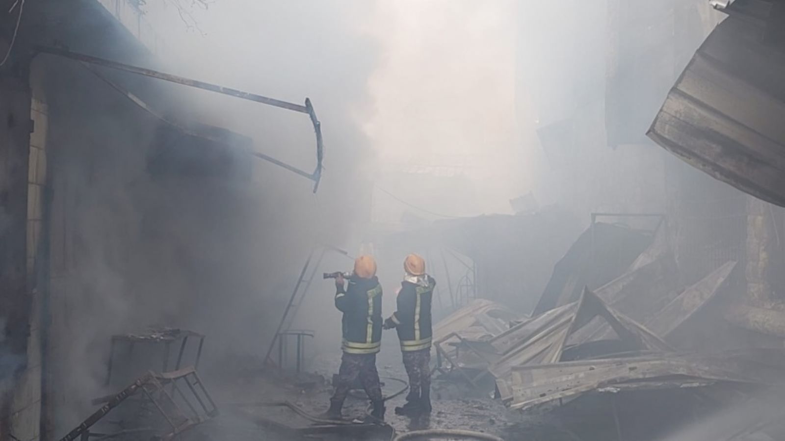 الدفاع المدني يسيطر على حريق ضخم في سوق الخضار برام الله