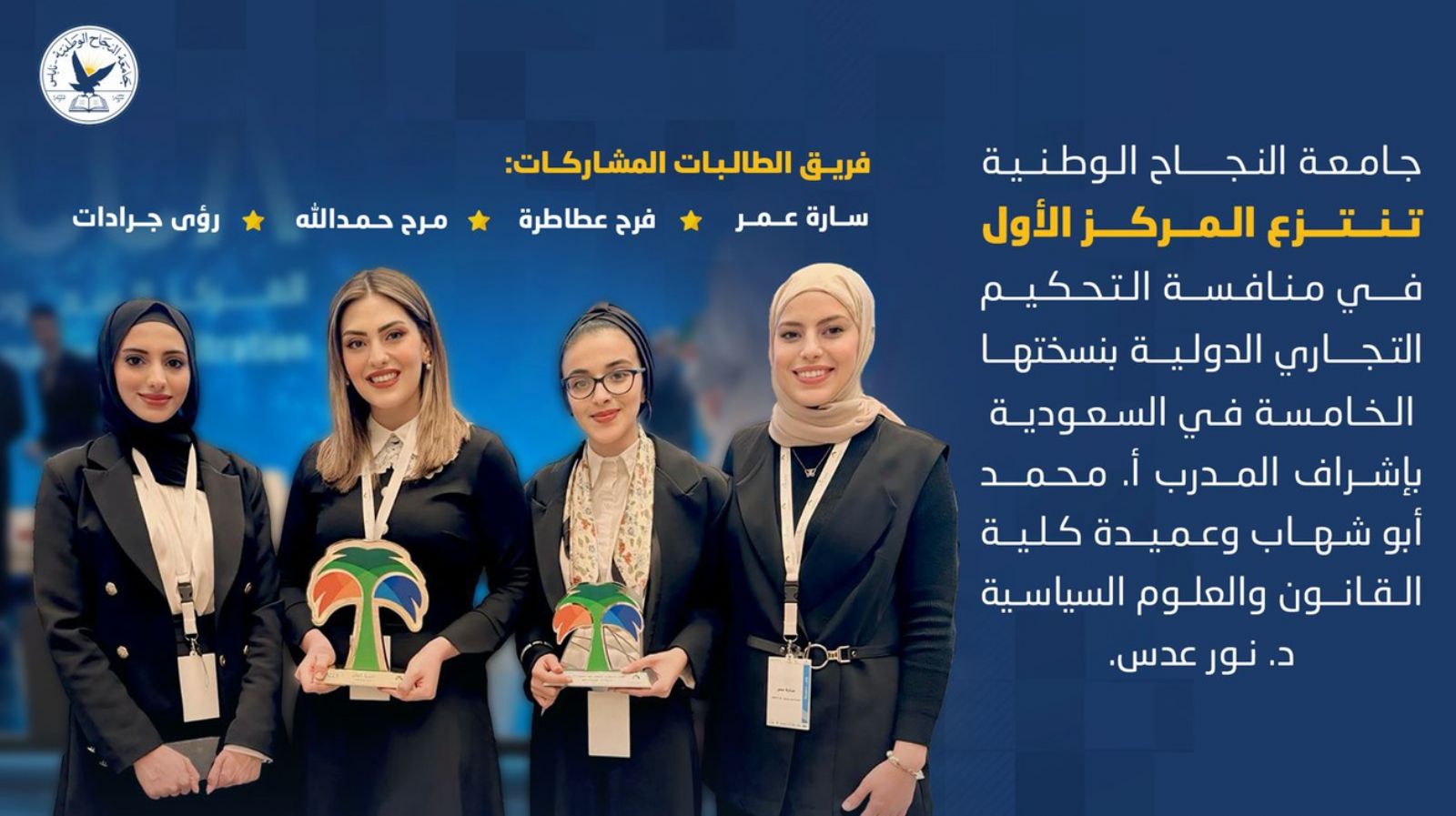 جامعة النجاح الوطنية تنتزع المركز الأول في منافسة التحكيم التجاري الدولية بنسختها الخامسة في السعودية