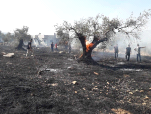 الدفاع المدني يخمد حريقا التهم 20 شجرة زيتون في بلدة يعبد