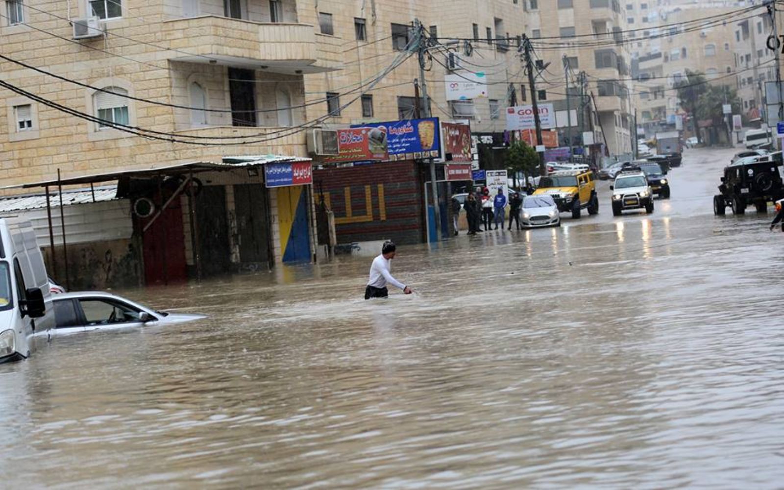 إنهيار جزء من جدار الفصل العنصري شرق القدس وإغلاق طرقات بسبب السيول