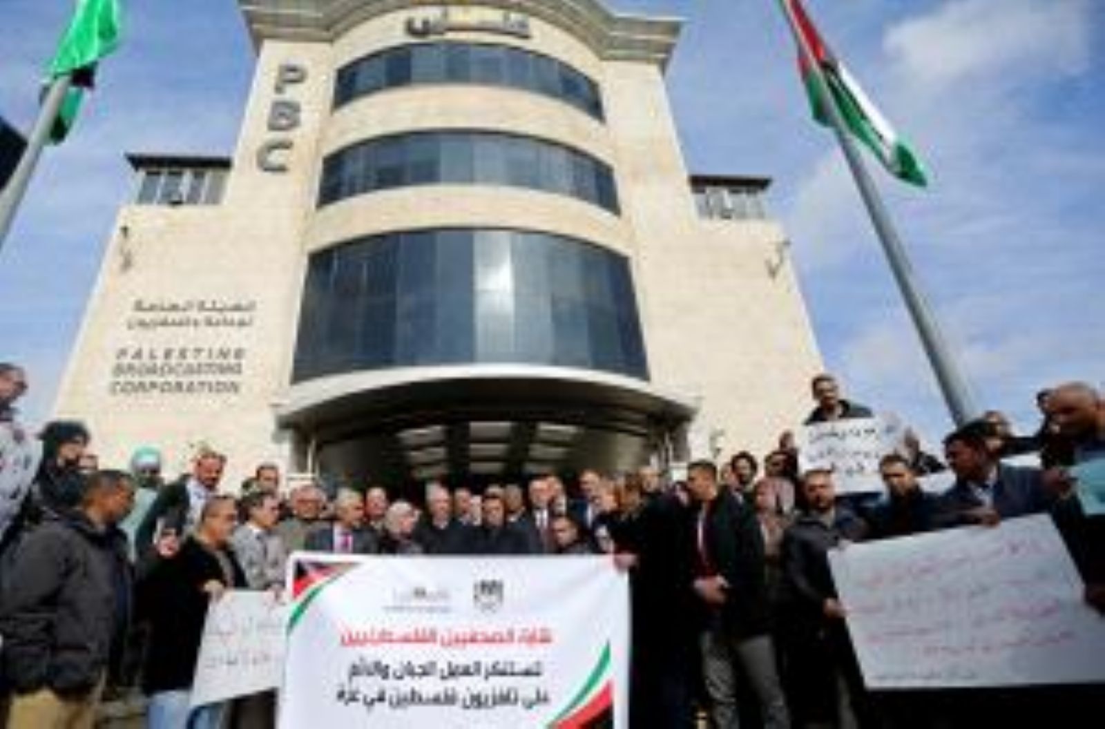 رام الله: وقفة رسمية وشعبية تنديدا بجريمة الاعتداء على الهيئة العامة للإذاعة والتلفزيون في غزة