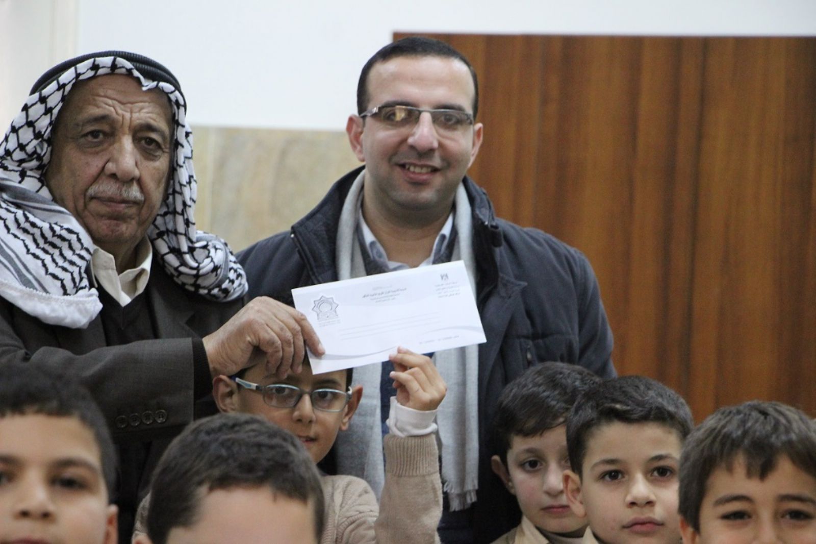 طلاب مدرسة أكاديمية القرآن الكريم يسلمون لجنة زكاة نابلس تبرعات جمعوها ضمن حملة سهم الخير