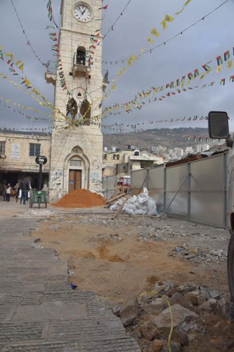 بلدية نابلس تباشر أعمال ترميم منطقة ساحة المنارة في البلدة القديمة