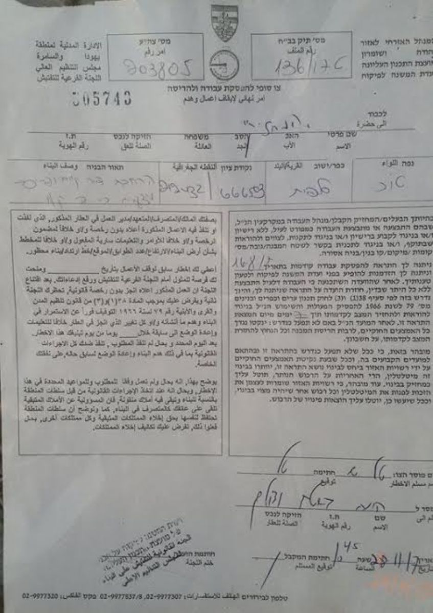 الاحتلال يخطر بهدم عزبة أبو البصل غرب سلفيت
