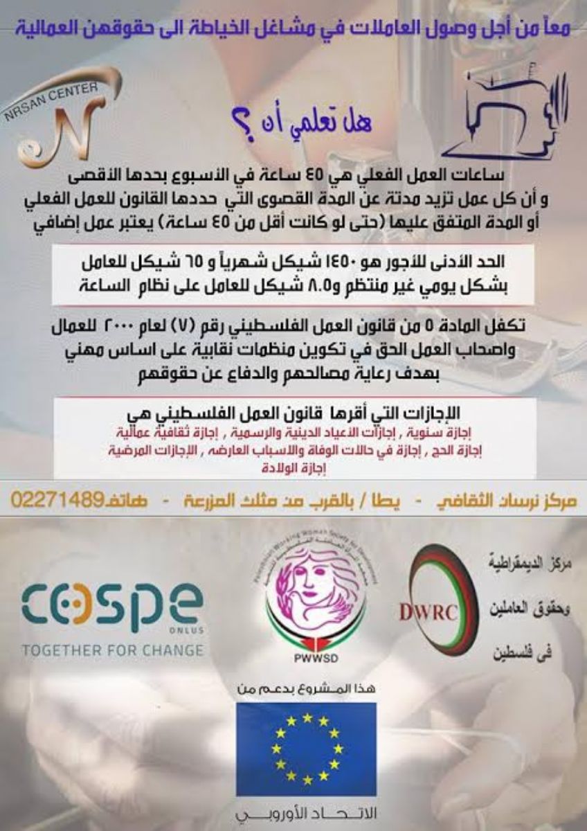 مركز نرسان يطلق حملة لدعم العاملات في مشاغل الخياطة في الوصول الى حقوقهن