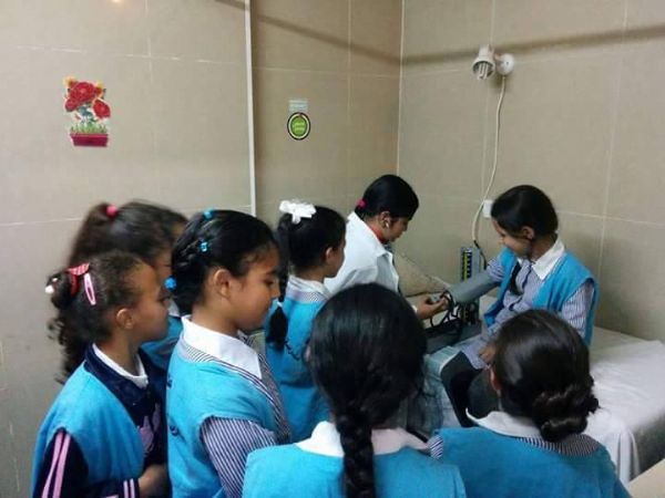 طالبات اللجنه الصحية في مدرسة بنات بلاطة الثانية في زيارة لجمعية يازور الخيرية