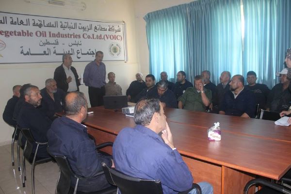 نقابة الزراعة والصناعات الغذائية بنابلس تعقد ورشة لعمال مصنع الزيوت حول السلامة المهنية