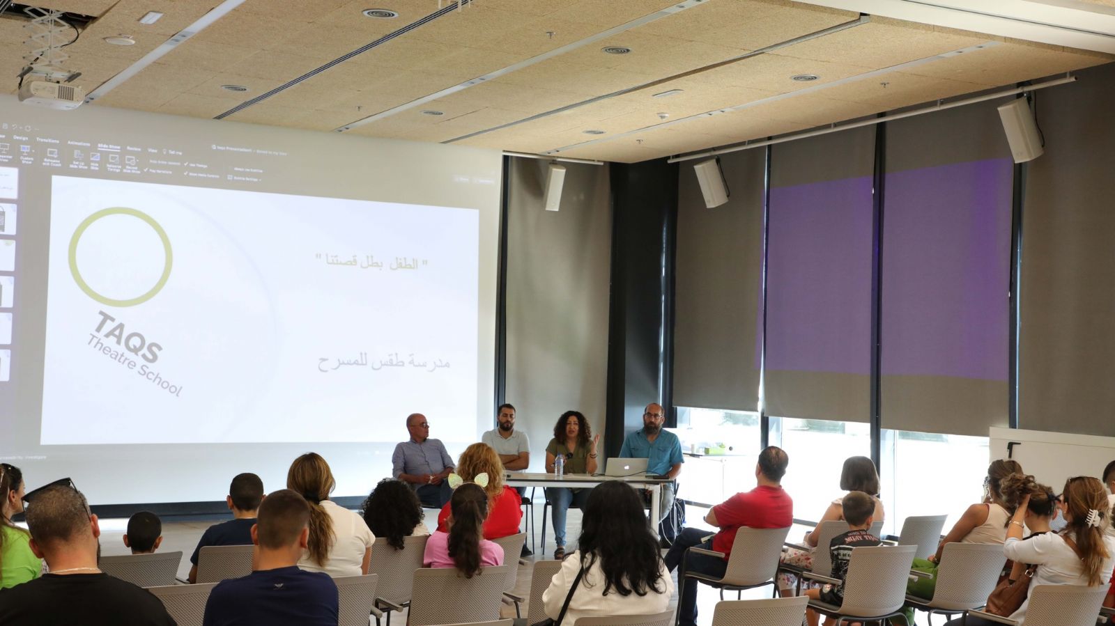 مدرسة طقس للمسرح في مركز القطان الثقافي لقاءا تعريفيا حول رؤية واهداف وبرامج التعلم التي تطرحها المدرسة.
