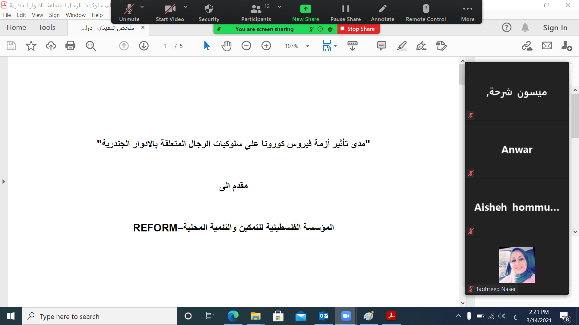 REFORM تناقش مدى تأثير أزمة فيروس كورونا على سلوكيات الرجال المتعلقة بالادوار الجندرية