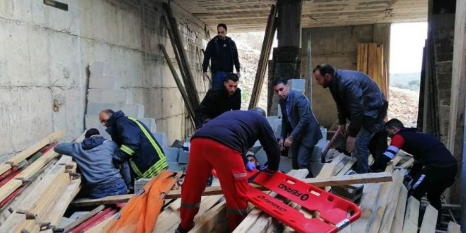 بالصور: الدفاع المدني يخلي إصابتين إثر إنهيار واجهة منزل قيد الإنشاء في سلفيت