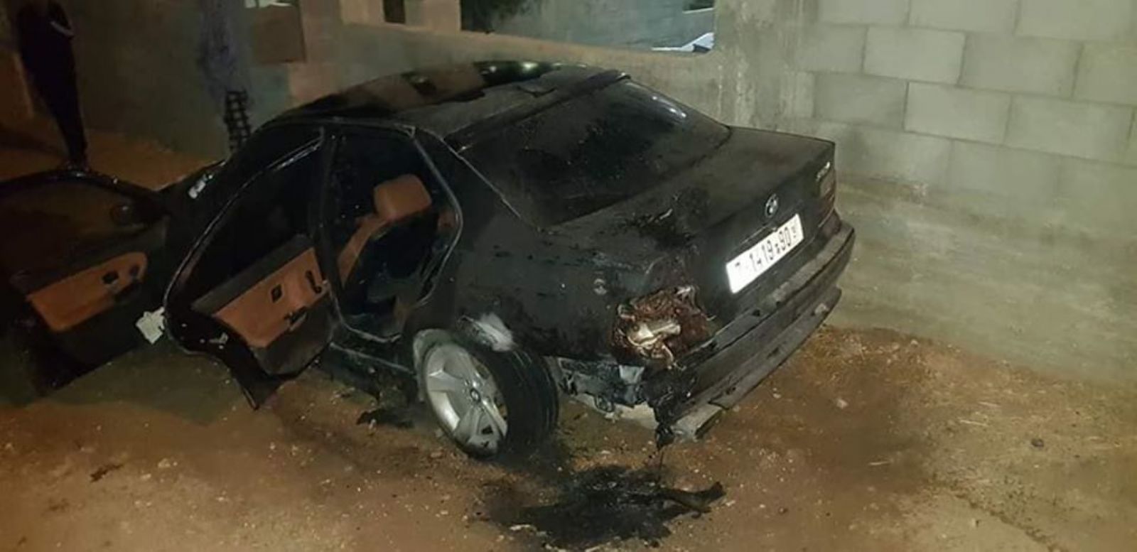 مستوطنون يخطون شعارات ويحرقون مركبة في بيت دجن شرق نابلس